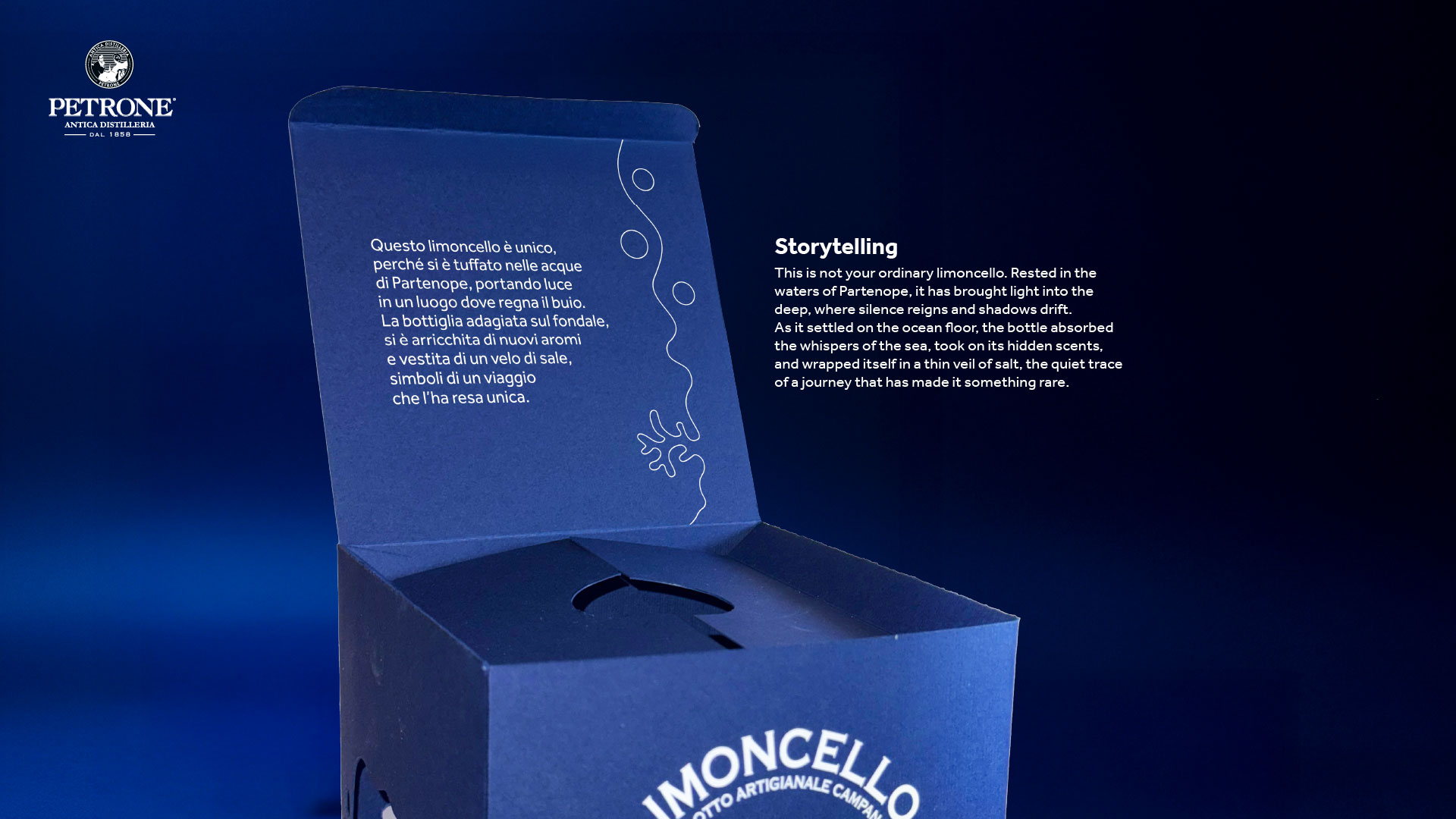 Il lavoro, nato da una sfida lanciata dalle Distillerie Petrone, si distingue per la sua capacità di unire tradizione, territorio, tecnologia e creatività. Il team ha ideato uno scrigno in cartotecnica che richiama le onde del mare in cui il limoncello è stato affinato, arricchito da un NFC audible tag capace di raccontare in modo immersivo la leggenda di Partenope. Un progetto poetico e innovativo, premiato all’unanimità lo scorso 6 novembre a Milano, durante la serata finale di Intersections, e che sarà ricordato anche nell’Annual dell’ADCI come eccellenza della creatività studentesca italiana.